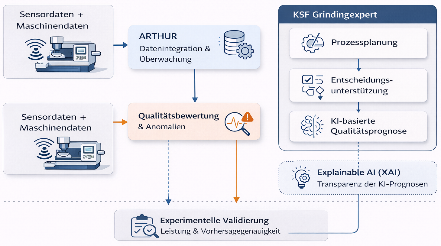 - Entwicklung eines KI-basierten Systems zur Echtzeit-Vorhersage der Werkstückqualität im Schleifprozess auf Basis von Sensor-, Maschinen- und Prozessdaten.